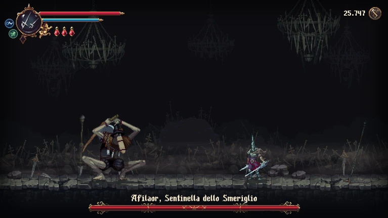 Diversi aspetti di Blasphemous 2 derivano dai soulslike, come ad esempio quando la lore del mondo viene raccontata attraverso le suggestive descrizioni degli oggetti. Anche il livello di difficoltà risente di questo influsso: per portare a termine il gioco bisogna possedere una certa dimestichezza con azione 2D e platforming. Ci sono picchi di difficoltà, seppur non esagerati e nel campo dei metroidvania si è visto molto di peggio, ma qualche passaggio potrebbe causare frustrazione ai meno esperti.