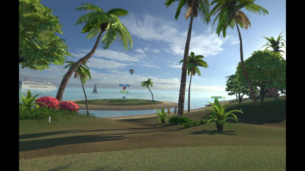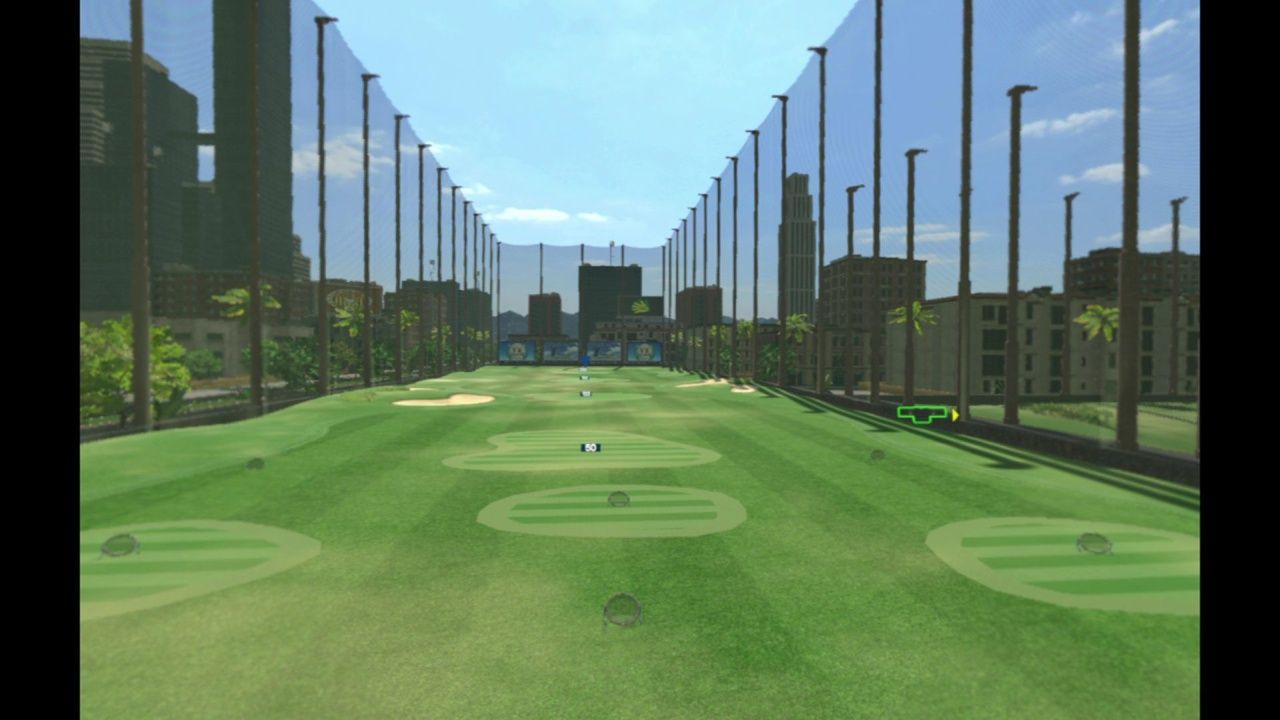 Una volta completato il tutorial si può iniziare il gioco vero e proprio che simula piuttosto accuratamente l’esperienza del golf. Esperienza simulata a partire dalla club house virtuale dell’inizio del gioco in cui una gentile addetta al ricevimento, con un profluvio di inchini tutto giapponese, vi inviterà scegliere una delle tre opzioni disponibili in questo primo menù: Campo, Campo di Allenamento, Altro. Come prima cosa partiamo dal campo di allenamento, modellato come uno vero, con tutte le piazzole affiancate e su due piani da cui possiamo allenarci. Permette di provare diversi scenari a seconda della posizione, piano terra per migliorare i colpi e la traiettoria della pallina oppure primo piano per simulare un campo in discesa, oppure ancora fare pratica con il putt, spostando la palla e provando distanze diverse dalla buca o, con l’opzione avvicinamento, di lavorare sull’approccio alla buca per sviluppare le abilità nel rough e nel bunker.