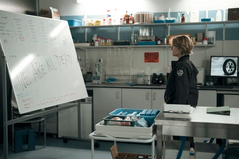 Appena arriva alla stazione di ricerca, Liz Danvers fa in modo di spegnere il DVD di Una pazza giornata di vacanza (1986), con un giovanissimo Matthew Broderick che canta Twist and Shout. Dice di non sopportare i Beatles, ma ha solo bisogno di concentrazione e serietà. Finge di non vedere il DVD di La cosa di John Carpenter, il celebre horror ambientato fra i ghiacci (come in The Head, la serie di Prime Video con la medesima ambientazione, in cui i ricercatori guardano il film), in bella mostra sullo scaffale: ha già rivolto altrove il suo sguardo. Sta già indagando. La scritta "siamo tutti morti" sulla lavagna non le basta, naturalmente. Cerca ovunque, con sguardo clinico.