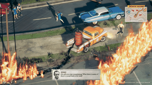 Deliver At All Costs ci porta nell'America del 1959, tra rock'n'roll e vestiti a pois, nei panni del corriere Winston Green impegnato nell'effettuare le consegne più disparate, da giganteschi pesci-spada a bombe inesplose che potrebbero deflagrare al minimo urto, passando per invasioni aliene e bersagli di un'esercitazione di bombardamento aereo nel corso della stessa. Ovunque vada Winston si trova invischiato in caos e distruzione, con la popolazione locale che non rimarrà certo immobile di fronte allo sfacelo.