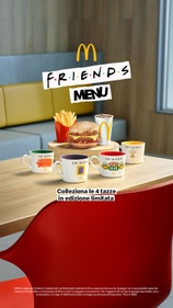 “Friends è una serie che ha segnato generazioni e che continua a parlare anche ai più giovani con un linguaggio universale che celebra l’amicizia, la leggerezza e i piccoli grandi momenti della vita. Con il Friends Menu abbiamo voluto rendere omaggio a questo fenomeno evergreen offrendo ai nostri clienti un’occasione per collezionare, condividere e rivivere quell’atmosfera unica che ha reso la serie TV leggendaria”, ha dichiarato Valeria Casani, Chief Marketing Officer di McDonald's.