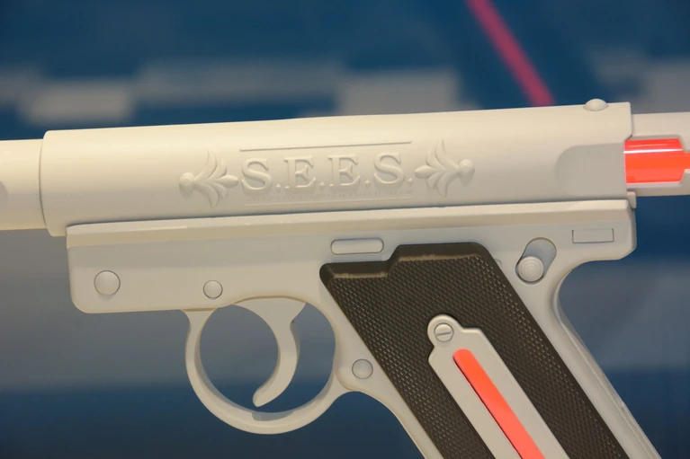 La replica è strutturata in modo da non essere semplicemente un oggetto inerte ma presenta alcune features che cercano di riproporre le caratteristiche dell'originale, come ad esempio l'illuminazione a LED azzurra che diventa rossa passando alla modalità Theurgy. L'oggetto fornisce inoltre un feedback che emula il rinculo alla pressione del grilletto, con conseguente "piccola botta" all'estremità della canna. Il tutto mantiene comunque un aspetto sufficientemente giocattoloso da far sperare che nessuno possa scambiarlo per un'arma reale.