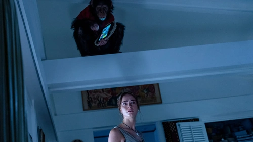 Un’impressione ulteriormente confermata dalla scelta, per nulla scontata nell’epoca odierna, di utilizzare un attore in costume per vestire i panni della scimmia, piuttosto che affidarsi alla performance capture digitale o a improbabili effetti speciali. Il design di questo atipico villain è inquietante al punto giusto, con occhi iniettati di sangue e movimenti frenetici che trasmettono efficacemente il senso di una creatura completamente fuori controllo.