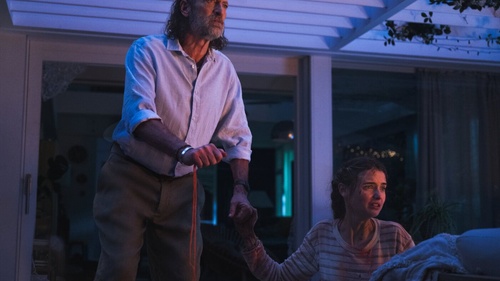 Roberts, anche coautore della sceneggiatura scritta a quattro mani con Ernest Riera, trova una soluzione ingegnosa per intrappolare i protagonisti nella piscina a strapiombo della villa, creando una zona di sicurezza temporanea che ricorda parzialmente il terrore, ben più spaventoso, di It Follows (2014). È un’idea che permette di realizzare alcune sequenze ad alta tensione, con Ben che gira intorno al bordo vasca ma non può entrarvi per via della sua paura dell’acqua.