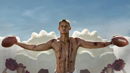 Nel corso dell'ora e mezzo di Him pare di assistere ad un susseguirsi di spot televisivi affastellati alla rinfusa, all'interno di una narrazione che vorrebbe farsi portatrice di diversi messaggi sul mondo dei mass media e su quell'idolatria nei confronti dello sport che, cambiando discipline a seconda delle latitudini, è diffusa largamente in ogni angolo del pianeta. Ed è un peccato, perché le idee non mancano affatto in una sceneggiatura che intende riflettere proprio sulla fama e sulle conseguenze che da essa ne derivano, con l'ossessione di essere il migliore - quel GOAT che tanto spesso sentiamo nominare in ambito competitivo - declinata in una verve horror dai toni via via sempre più psichedelici e assurdi.