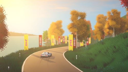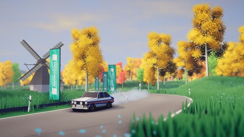 Prima ancora di accendere i motori e mettersi alla guida, colpisce da subito la bellissima interpretazione un po’ naif delle ambientazioni, suddivise in base alla tipologia di ambiente, ma anche di stagione, ed area geografica. Oltre ai tracciati quindi, si possono ammirare panorami che sembra realizzati come diorami artistici, pennellati con tinte tenui, quasi infantili, come fossero pastelli a cera, ma non privi di dettagli, anzi dietro una curva possono sbucare campeggiatori, elicotteri, barche e altri elementi di contorno che spesso attirano l’occhio del giocatore.