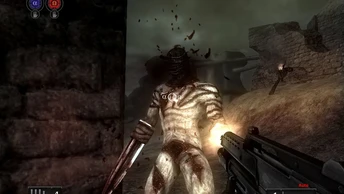 Solo occasionalmente, ci troveremo di fronte a dei tanto simpatici quanto coinvolgenti enigmi “a tempo”, sullo stile di Dragon’s Lair. Per i non addetti ai lavori basti dire che, in determinate situazioni, la pressione in sequenza dei tasti giusti che appariranno sullo schermo, sarà vitale per il normale svolgimento della missione…! Jericho non dispone di tre “oggetti di culto”, ai quali altri sparatutto ci hanno abituato : salvataggi liberi, pacchetti di munizioni e kit medici. Il primo, é una pesante quanto scomoda eredità da consolle: solo nei “punti di controllo”, la nostra avventura viene stoccata sul disco fisso e, abbandonare il gioco prima di tali punti, significa perdere i progressi ottenuti fino a quel momento. Niente munizioni, che vengono generate “per magia” da parte di uno dei componenti del gruppo. Niente kit medici:se feriti mortalmente, dovremo aspettare, in ginocchio e perfettamente immobili, che uno del nostro gruppo ci ridoni energia vitale, sperando che nel frattempo i mostri non uccidano tutti,altrimenti il game over é assicurato.