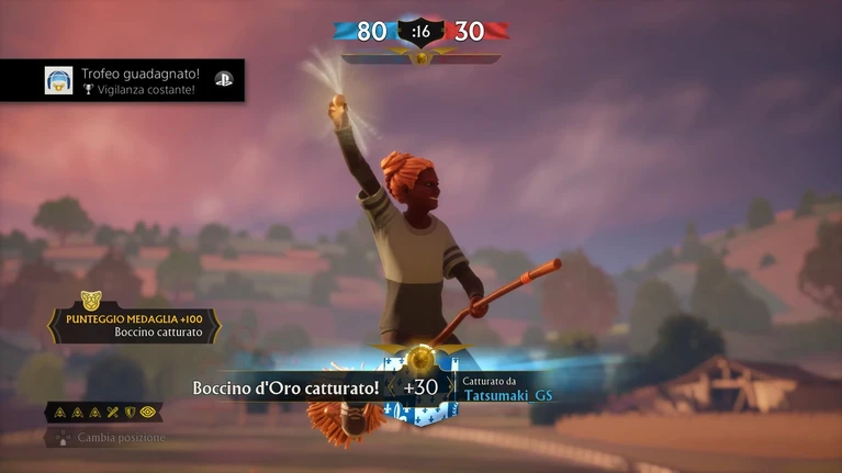 Ciascuno di questi 4 ruoli – Cacciatore, Portiere, Battitore e Cercatore – ha il suo personale schema di comandi, anche se alcuni elementi saranno in comune e personalizzabili, per esempio la scelta di volare in avanti tramite l'analogico o uno dei grilletti. Durante il gioco in SinglePlayer piloterete principalmente un Cacciatore, con comandi per il tiro o passaggio, il contrasto o la “chiamata del passaggio”. Potrete alternare quando vorrete il controllo diretto tra i tre Cacciatori o gli altri ruoli con un minimo di pausa tra un cambio e l'altro; tutti i ruoli non controllati saranno gestiti dall'IA. Quando interpreterete il Battitore avrete il compito di mirare e colpire gli avversari col Bolide, cosa che alla lunga li costringerà a delle pause di riposo fuori dal campo; come Portiere ovviamente la vostra prima preoccupazione sarà quella di difendere i tre Anelli della porta, ma potrete anche schierare degli “anelli schema” sul campo che garantiscano ai compagni di squadra dei buff temporanei al Turbo.