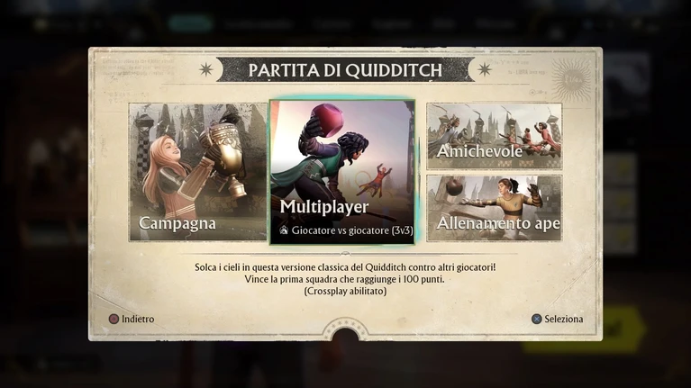 L'esperienza di gioco inizia con la cosiddetta “Coppa del Giardino Weasley” che altro non è che il lungo, ma doveroso, tutorial: uno alla volta vengono introdotti i 4 ruoli e al termine di ogni sessione di allenamento si fa una “partitella”, fino alla Coppa vera e propria. La Carriera per il giocatore singolo, che può comunque essere spalleggiato in co-op da uno o due amici, prosegue poi con la Coppa delle Quattro Case di Hogwarts [Griffondoro, Serpeverde, Corvonero e Tassorosso], il Torneo Tremaghi [Hogwarts, Beauxbatons e Drumstrang] e infine la Coppa del Mondo fra sedici nazioni – curiosa la scelta delle stesse che, oltre all'Italia [da sempre bestia nera nell'universo di Harry Potter], taglia via la Bulgaria di Viktor Krum.