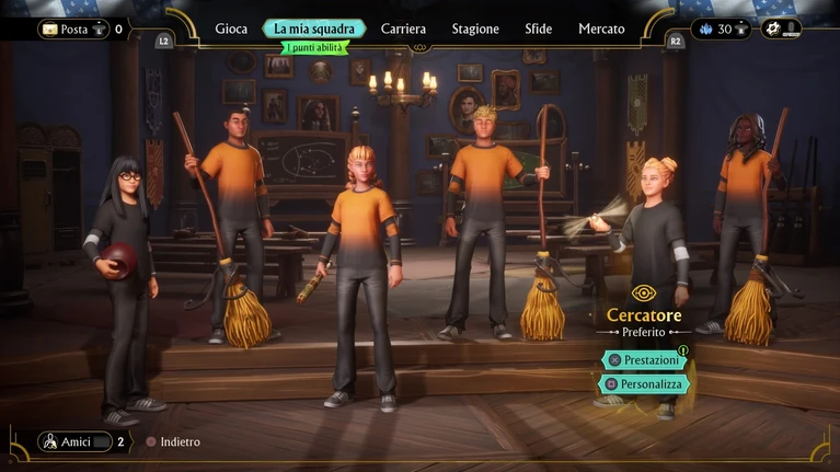 Ogni coppa è strutturata con un sistema a gironi in cui tutti i punti della partita fanno classifica seguito da uno a eliminazione diretta, in modo da permettervi di giocare sempre almeno 4 partite prima di essere eventualmente esclusi. Per accedere alla coppa successiva dovrete vincere la precedente ad un livello di difficoltà sempre maggiore, che si identificherà non solo in un comportamento più scaltro ed aggressivo dell'IA – ai livelli più alti volano Bolidi come riso ai matrimoni – ma anche in un maggiore Livello dei suoi giocatori. Questo parametro si incrementerà giocando partite su partite e possibilmente svolgendo azioni rimarchevoli in game [segnare molti goal, fare degli assist o dei retropassaggi, catturare due volte il Boccino o altro ancora]: ad ogni passaggio di Livello riceverete risorse da spendere nello store in-game, ad esempio per potenziare i parametri delle varie Scope oppure per ottenere miglioramenti estetici. Ma la cosa più importante è ad ogni Livello dal 6° in poi otterrete 1 Punto Abilità tramite cui migliorare le prestazioni dei vostri giocatori: ogni Ruolo può essere migliorato fino a 10 volte progredendo in 3 percorsi da 6 abilità, di conseguenza non potrete “sbloccare” tutto e arrivati al Livello 45 avrete il massimo dei punti [il gioco è abbastanza equanime e migliorare un Cacciatore migliorerà allo stesso modo anche gli altri due]. I Punti Abilità possono comunque essere sempre rimossi e ri-allocati tra una partita e l'altra.