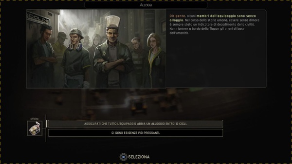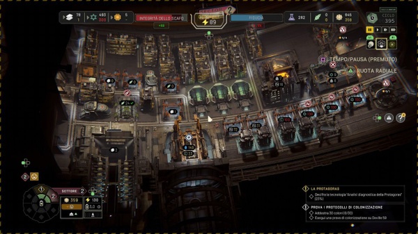 A questo si aggiunge, come accennato in precedenza, che ogni nuovo balzo che effettuerete con la Tiqqun, corrispondente ad un nuovo capitolo della trama, vi porterà in un luogo sconosciuto con nuove esplorazioni da svolgere e nuove decisioni da prendere quasi alla cieca, il tutto portandovi appresso gli errori logistici commessi nei capitoli precedenti con in più il decadimento stesso della struttura. Il gioco offre tre livelli di difficoltà – Viaggio, Standard e Sfida – ed il consiglio è di cominciare dal più basso dove alcuni errori critici vengono perdonati e si può provare a correggere. A prescindere da ciò non è affatto una pessima idea quella di interrompere la prima partita dopo uno o due capitoli per cominciare da capo con una migliore concezione di come gestire il tutto; è comunque possibile customizzare i parametri di gioco a proprio piacimento.