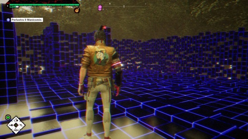 Così come la trama è un patchwork di generi e di elementi assemblati in maniera caotica [realmente o apparentemente? Scopritelo voi!], anche la realizzazione di Romeo is a Dead Man si prende ampie licenze. L'ambiente di gioco – inteso come gameplay standard – è normalmente composto da aree discrete collegate tra loro in vario modo e mai particolarmente ampie; ugualmente piuttosto limitato è il campo visivo e quello percettivo dei nemici, ma questo non ha permesso di collocarne quantità anche cospicue nella singola stanza. Nel Subspazio, dove il dettaglio delle texture è molto più modesto, il campo visivo cresce notevolmente.