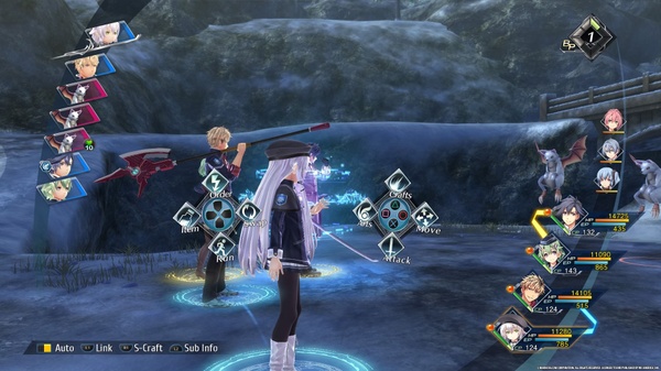Il combattimento si svolge a turni, con un ordine di iniziativa che non è fisso ma si modifica in funzione delle azioni scelte dai giocatori: alcune infatti richiedono dei tempi di “ricarica” più alti di altre, per non parlare dei Poteri che, una volta impostati, si scatenano qualche turno dopo. Se si hanno a disposizione dei PG di riserva è anche possibile effettuare lo “scambio” del PG di turno con uno di essi. Tra i comandi c'è la fuga (che ha una probabilità di successo) ma manca la classica parata passiva. Uno degli elementi più interessanti è il fatto che la posizione di ogni singolo combattente sia determinante per stabilire se sia a portata d'attacco o nell'area d'effetto di un potere, come un incantesimo o un'esplosione, rendendo dunque importante sacrificare qualche (rapido) turno per gestire il movimento. Ogni PG ha tre parametri da tenere d'occhio: la barra della vita, la barra degli EP che si consumano con gli incantesimi, e l'ammontare dei CP (Craft Point) necessari per scatenare abilità speciali denominate, appunto Craft; a differenza degli altri due parametri, i CP si ricaricano attaccando il nemico e permettono anche di scatenare potenti mosse “S-Craft”.