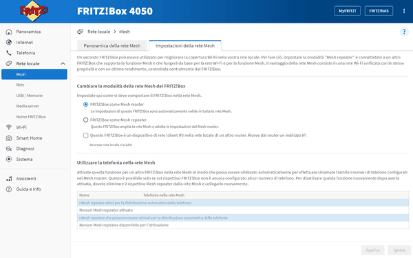 Il FRITZ!Box 4050 si distingue per l'adozione del Wi-Fi 6 per una maggiore velocità di trasferimento e migliore gestione dei dispositivi collegati. Grazie a questa tecnologia il router è in grado di mantenere una connessione stabile e performante anche in ambienti dove sono presenti numerosi dispositivi smart come smartphone, laptop, console di gioco e dispositivi IoT. La rete Wi-Fi Mesh permette di estendere la copertura della rete domestica combinando più dispositivi FRITZ! in un'unica soluzione ottimizzata, migliorando il segnale anche nei locali più lontani dal router principale. La resa tende ovviamente a calare in presenza di più piani, con muri maestri a fare da schermatura, in tal caso il Mesh aiuta ma non può compiere miracoli. Nel nostro caso l'Xbox One X operativa nel seminterrato della casa riceveva circa il 45% del segnale dal router posizionato al piano superiore, non molto distante dalla rampa di scale. In tal caso la difficoltà era costituita da una spessa parete in calcestruzzo che non consentiva la piena potenza del segnale.
