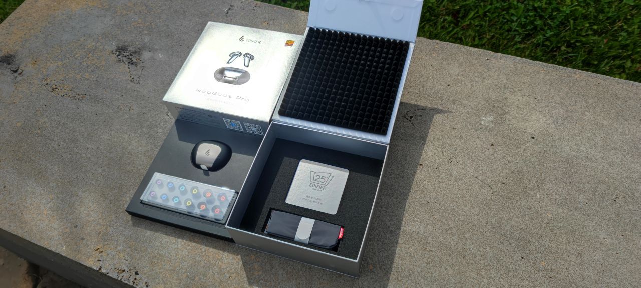 Quella arrivata in redazione è una confezione che denota la cura di Edifier per il prodotto e la volontà di trasferire una qualità Premium a partire proprio dalla presentazione estetica. Abbiamo visto confezioni di prodotti con prezzi ben al di là di quello delle NeoBuds Pro realizzate in maniera molto più approssimativa e poco accattivante.