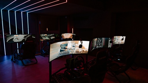 All'interno di un ambiente molto accogliente che include una zona food di Rossopomodoro, gli oltre 700 metri quadri disposti su 2 piani, 24 postazioni PC per gaming, 9 simulatori racing di ultima generazione e 6 console Playstation 5 con schermo dedicato. La connessione a internet, powered by InternetONE (AS5398), viaggia alla altissima velocità di 100Gbit/s. Il collegamento è al TeraPOP di Via Caldera, tramite una dark fiber che consente facili ampliamenti di banda, latenze bassissime e lag a zero(!). Ogni PC è collegato alla rete locale con 2.5gbit/s simmetrici e dedicati(!). Le postazioni sono costantemente monitorate e salvaguardate da uso improprio per navigazione Web e installazione applicativi.